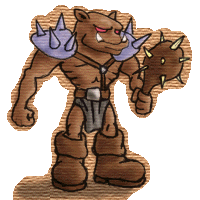 The origin of the sub-species of goblin, known as the hobgoblin is uncertain. They are often twice the size of their smaller brethren, with large muscles and blue skin, yet their mental faculties seem to be even poorer then that of the other goblins. It is largely believed that these creatures have been warped by the dark energy found in certain areas of the woodlands. These mutations have left the Hobgoblins with incredible physical strength and stature that allows them to wield their massive clubs more effectively then the best Goblin soldiers can wield their bladed weapons.