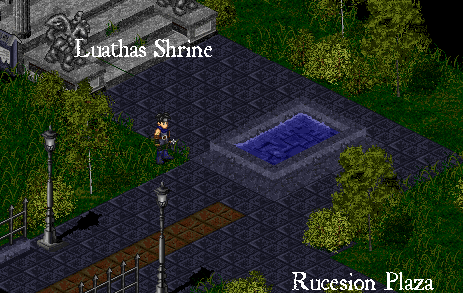 A good question indeed. The Rucesion Plaza is located directly across from the Luathas Shrine as you leave Rucesion headed for Dubhaim castle. The Mileth Plaza is located due east of the Glioca Shrine as you leave Mileth. I have sketched some images below for you to take reference of.